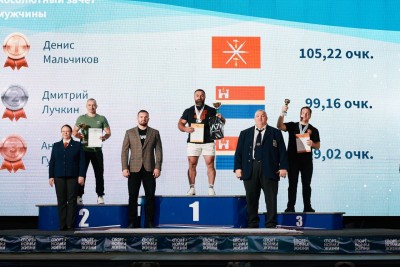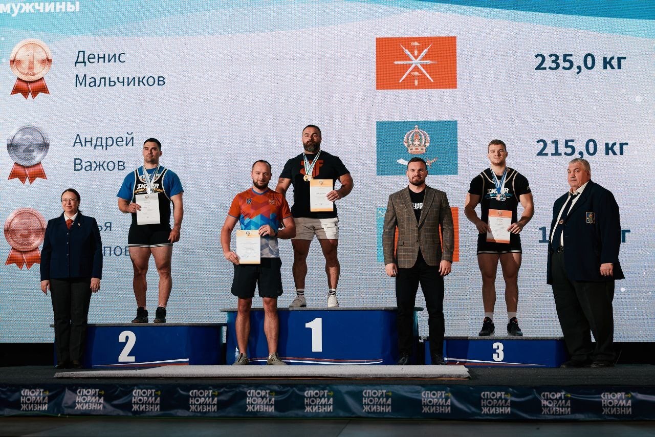 Мальчиков Денис занял 1 место в категории до 105 кг и стал абсолютным победителем среди мужчин с результатом 235 кг.